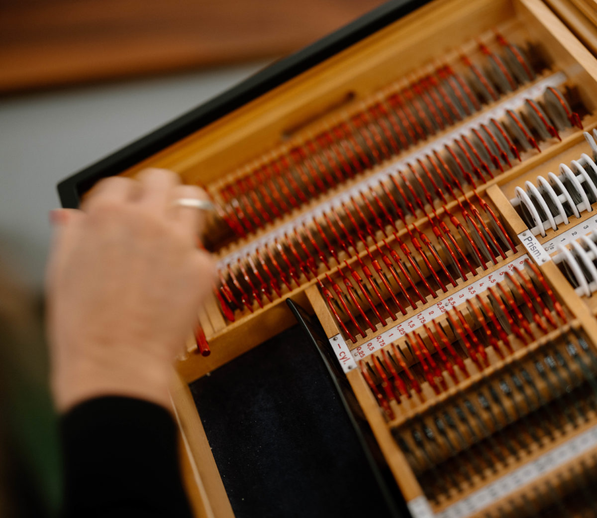 Der Sehtest ist mehr als reine Vermessung der Augen. Die Grundlage der perfekten Brille bilden präzise bestimmte Brillenwerte. Erfahrung, Geduld und Fingerspitzengefühl schaffen das optimale Ergebnis. Wir nehmen uns Zeit für Sie, um gemeinsam mit Ihnen Ihr persönliches Lieblingsstück zu gestalten.